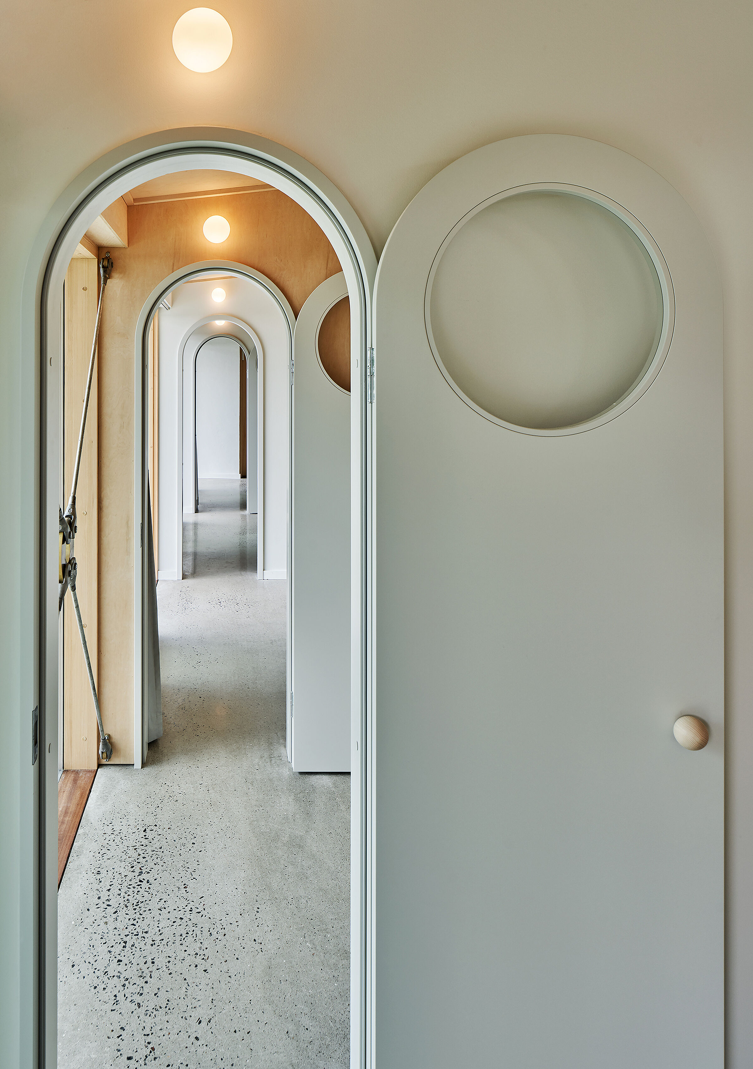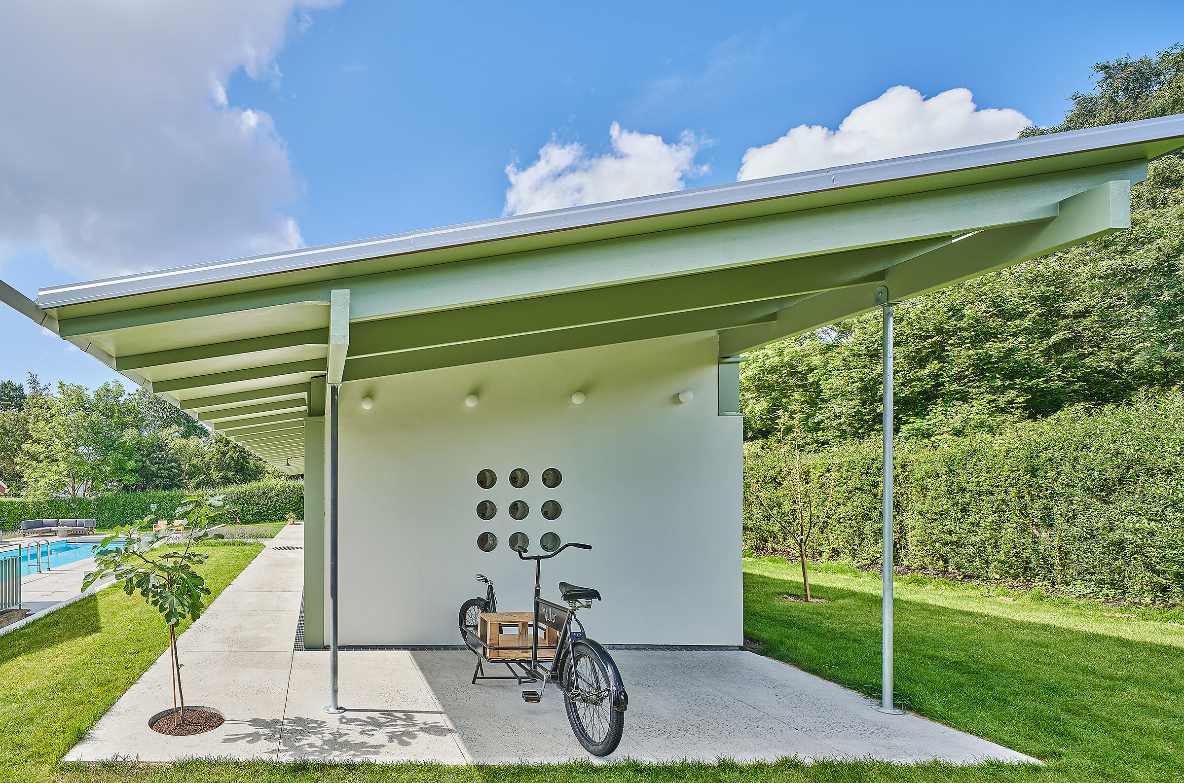 Ericsson är en gammal vän. När han behövde mer utrymme för gäster var vi glada att få hjälpa till. Huset bygger på en enkel princip med rum i fil under ett utstickande tak täckt av solceller. Alla rum har samma storlek med glasskjutdörrar från vägg till vägg, även förrådet. Några saker adderades på vägen. Ett runt fönster i bastun, ett tvättställ med minibar i varje sovrum. Rundade dörrar som gör vyn genom huset lite mer poetisk. En kopp i väggen som rymmer handtaget när innerdörrarna är uppställda. Runda betongglas i gavelväggen. Små saker men alla detaljer fick samma uppmärksamhet. Trots det är huset i princip byggt utifrån två ritningar (med några extra samtal och skisser mellan oss och byggaren).